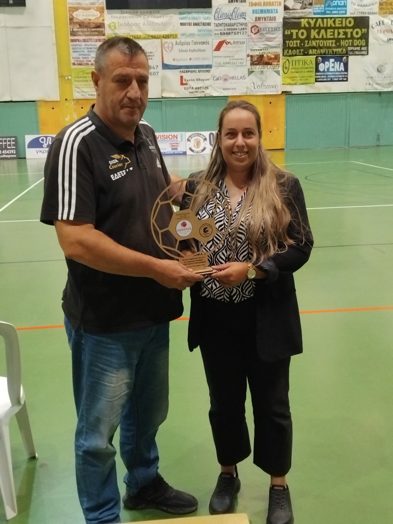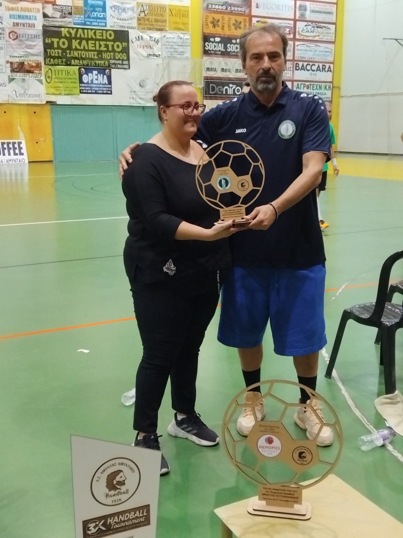 Η Μαριάννα Κοτζαμανίδου παρέλαβε αναμνηστική πλακέτα από τον Πρόεδρο του Αμύντα και ανέφερε: «Είμαι πολύ συγκινημένη που το Αμύνταιο δεν ξεχνά τον Πατέρα μου και την προσφορά του στο άθλημα της Χειροσφαίρισης που τόσο πολύ αγάπησε.