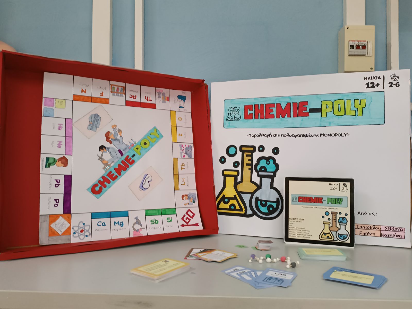 Το “Chemie -Poly” αποτελεί ένα καινοτόμο εκπαιδευτικό παιχνίδι που συνδυάζει τη γνώση της Χημείας με τη δημιουργικότητα, τη στρατηγική σκέψη και τη συνεργασία. Μέσα από ευφάνταστους μηχανισμούς και ελκυστικό σχεδιασμό, οι μαθήτριες κατάφεραν να μετατρέψουν επιστημονικές έννοιες σε μια διαδραστική και ευχάριστη εμπειρία μάθησης.
