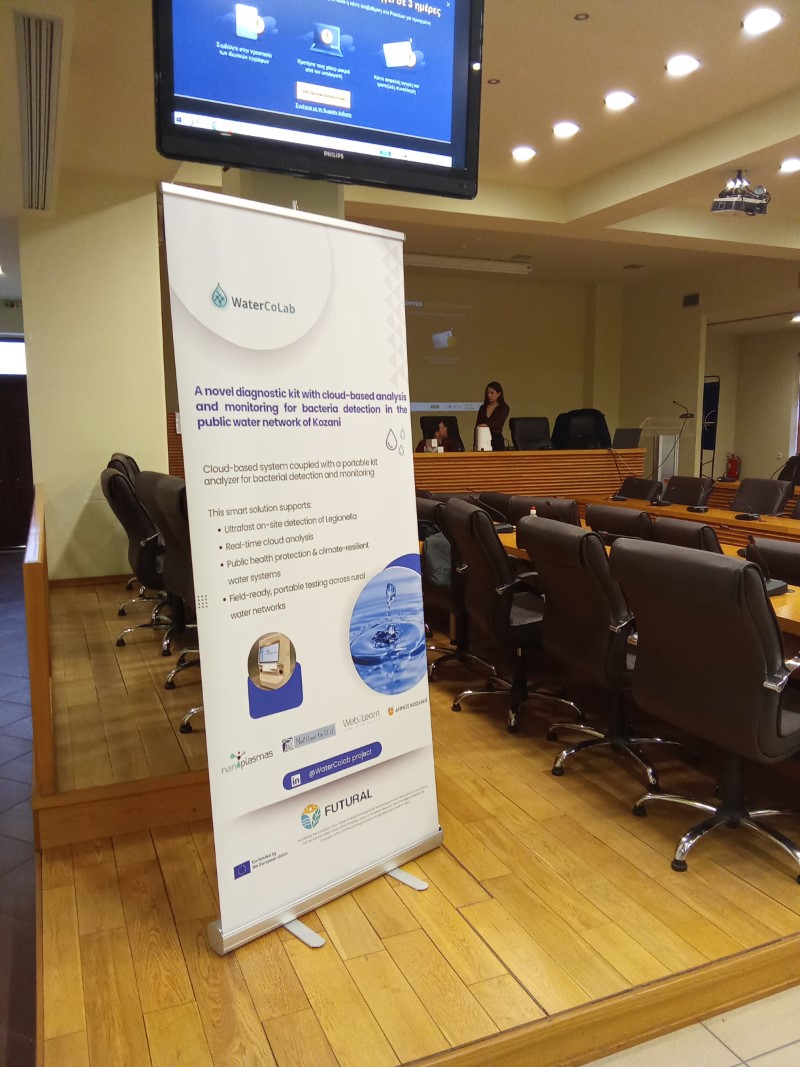 Από την Nanoplasmas, η κα. Αθανασία Ουτσκούνη παρουσίασε το καινοτόμο κιτ και τον φορητό αναλυτή για τον ταχύ έλεγχο της ποιότητας του νερού και την ανίχνευση του βακτηρίου της λεγεωνέλλας, πραγματοποιώντας σχετική επίδειξη.