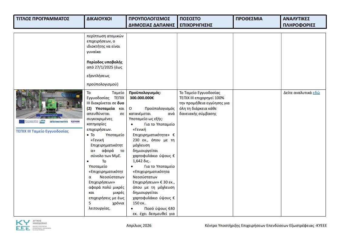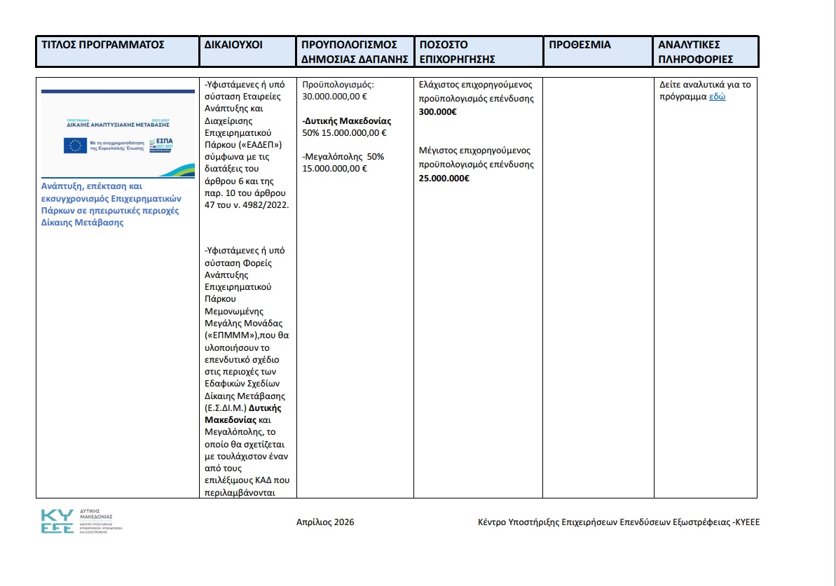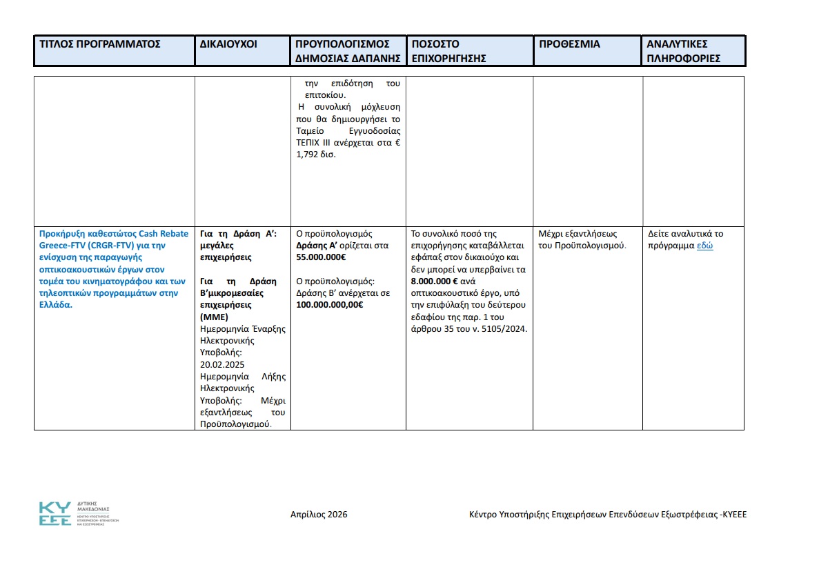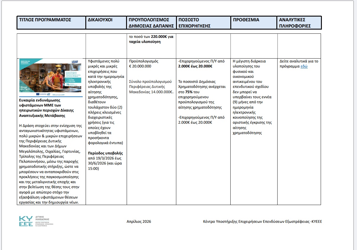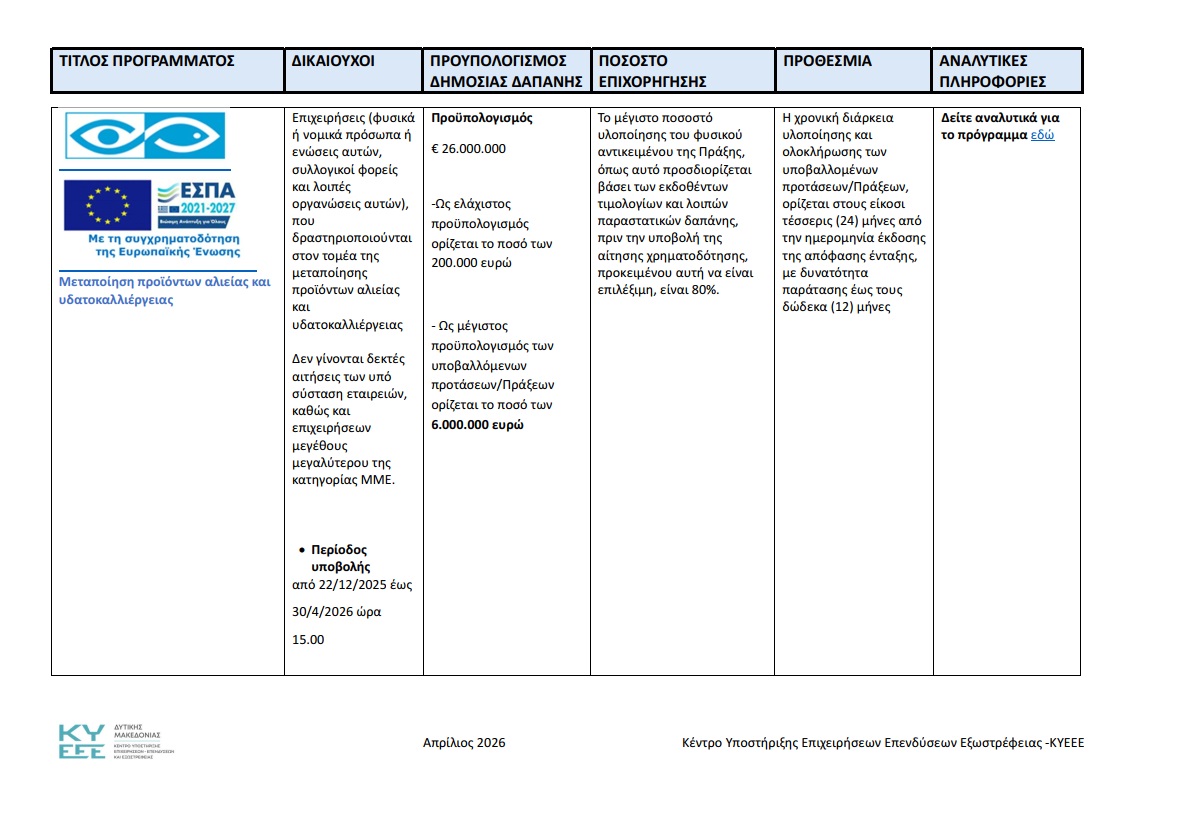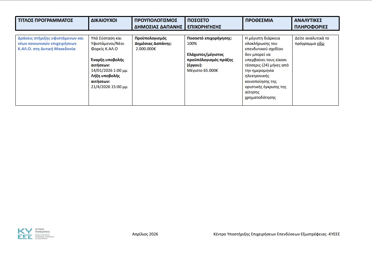 ΔΕΛΤΙΟ ΤΥΠΟΥ ΓΙΑ ΕΝΕΡΓΑ ΠΡΟΓΡΑΜΜΑΤΑ ΚΥΕΕΕ_Απρίλιος 2026