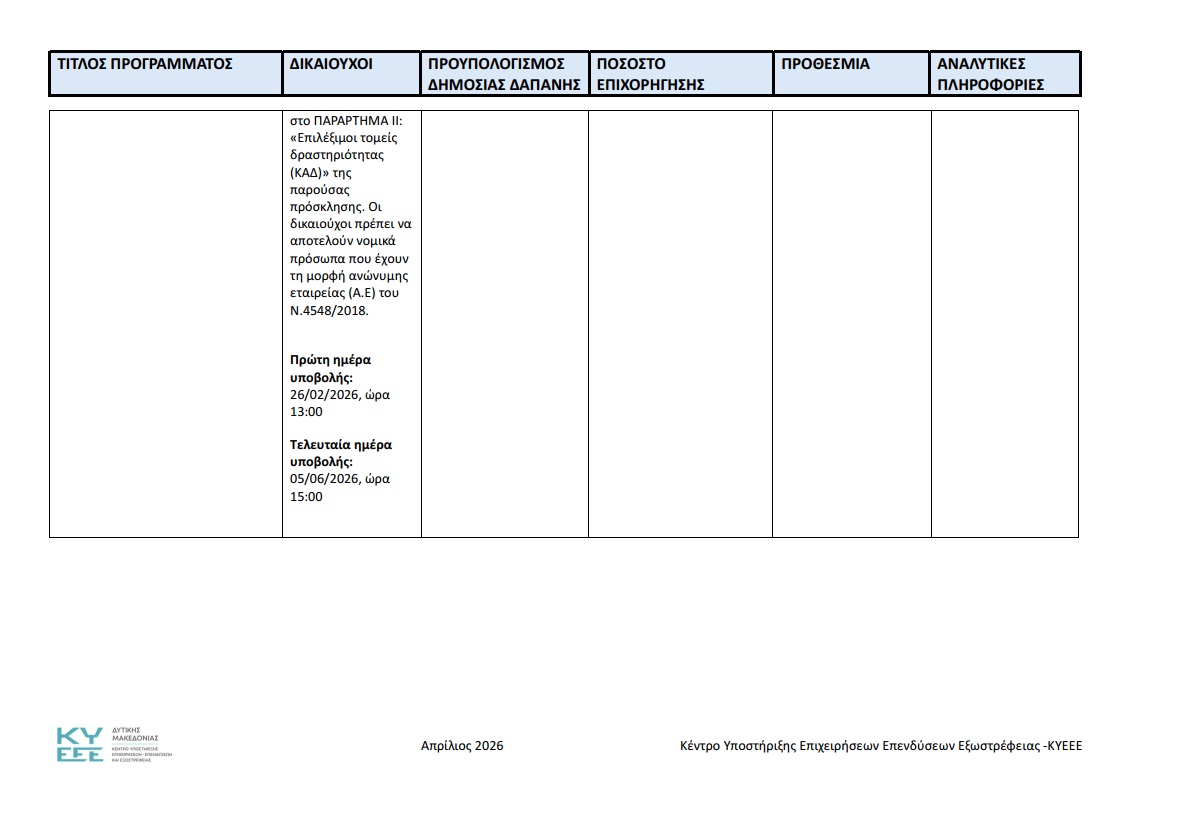 ΑΝ.ΚΟ. : Δημοσιοποίηση Ενεργών Προγραμμάτων ΚΥΕΕΕ – Απρίλιος 2026