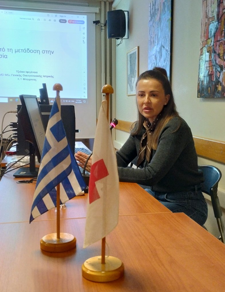Ees Florinas Epimorfosi 2Β) Μηνιαία Επιμορφωτική Συνάντηση Εθελοντών Υγείας: Στο πλαίσιο του θεσμού των μηνιαίων επιμορφώσεων των Εθελοντών του Τμήματος, πραγματοποιήθηκε την Τρίτη 16/12/2025 ενημέρωση με Θέμα: «RSV: Από τη Μετάδοση στην Προστασία» το οποίο ανέπτυξε με γλαφυρό και πολύ πρακτικό τρόπο η Δρ. Ιφιγένεια Τζιόκα, MD MSc Γενικής Οικογενειακής Ιατρικής, (Κ.Υ ΦΛΩΡΙΝΑΣ). Η ενημέρωση ήταν ανοιχτή και προς το ευρύτερο κοινό, ώστε η γνώση-ευαισθητοποίηση να διαχέεται προς όφελος και ενδυνάμωση της τοπικής κοινωνίας απέναντι στην νόσηση από τον Αναπνευστικό Συγκυτιακό Ιό – RSV, ο οποίος, όπως τόνισε η εισηγήτρια, διαλανθάνει της προσοχής με την κοινότυπη συμπτωματολογία που αρχικά δημιουργεί, αλλά σε ειδικές κατηγορίες συνανθρώπων με άλλα παράλληλα χρόνια προβλήματα μπορεί να οδηγήσει σε σημαντικές επεκτάσεις και επιπλοκές. Η Γιατρός επεσήμανε την χρησιμότητα του σχετικού εμβολιασμού, ενώ στο περιθώριο της γενικότερης συζήτησης που έγινε, έδωσε χρήσιμες πληροφορίες για τον καίριο ρόλο του Προσωπικού και Οικογενειακού Γιατρού στη συνολική παρακολούθηση της υγείας και πρόληψης σοβαρών νοσημάτων. Τo Τμήμα ΕΕΣ Φλώρινας ευχαριστεί θερμά την κα Τζιόκα, για την εξαιρετική αμεσότητα και με την οποία παρουσίασε το θέμα της.