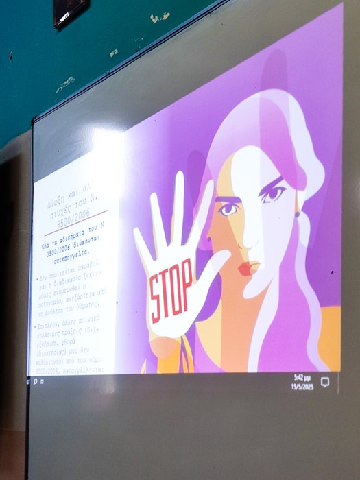 Στις 15 Μαΐου 2025 πραγματοποιήθηκε στο Σχολείο Δεύτερης Ευκαιρίας Φλώρινας ενημέρωση από τα μέλη του Αστυνομικού Τμήματος Φλώρινας και συγκεκριμένα του Γραφείου Αντιμετώπισης Ενδοοικογενειακής Βίας, Αθηνά Θεοφανίδου, Υπαστυνόμο Α’ και Μαρίνα Κλεισιάρη, Υπαστυνόμο Β’. Η ομιλία, που έγινε μέσα σε ζεστό κλίμα και με αμεσότητα, είχε ως στόχο την ενημέρωση των εκπαιδευομένων για το νομικό πλαίσιο, τις γραμμές επικοινωνίας και την συνολική πληροφόρηση επί του θέματος από αστυνομικής πλευράς, καθώς είχε προηγηθεί αντίστοιχη ενημέρωση και από το Συμβουλευτικό Κέντρο γυναικών του Δήμου. Η δράση αυτή δημιούργησε ιδιαίτερη αλληλεπίδραση με τις εκπαιδευόμενες και τους εκπαιδευόμενους και ακολούθησε πολύ ενδιαφέρουσα συζήτηση.