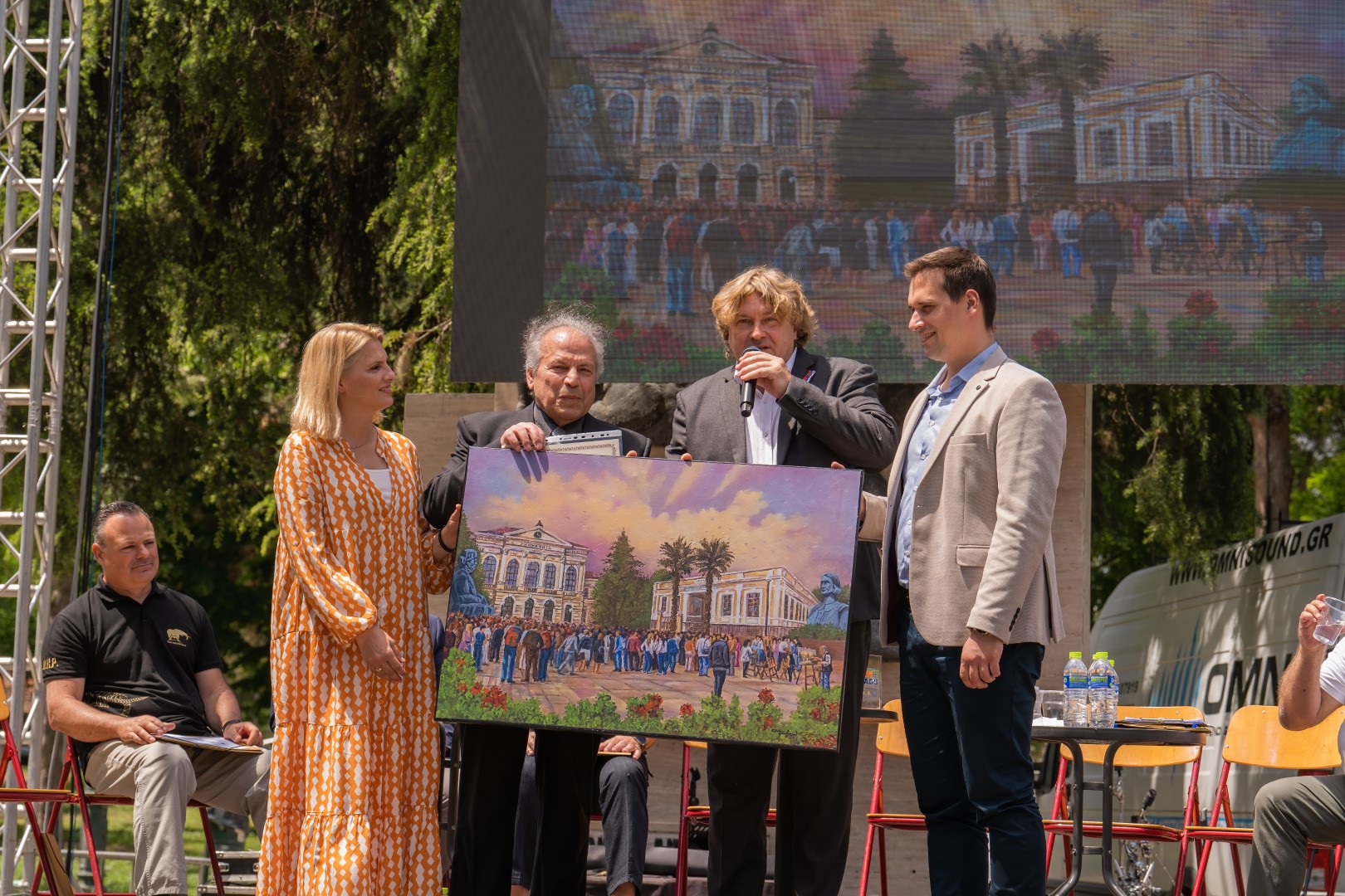 • Τον καταξιωμένο ζωγράφο κ. Δερμεντζίδη Συμεών για το έργο που φιλοτέχνησε με αφορμή την επικείμενη αδελφοποίηση του Δήμου Κατερίνης με τον αντίστοιχο του Κραγκούγιεβατς.