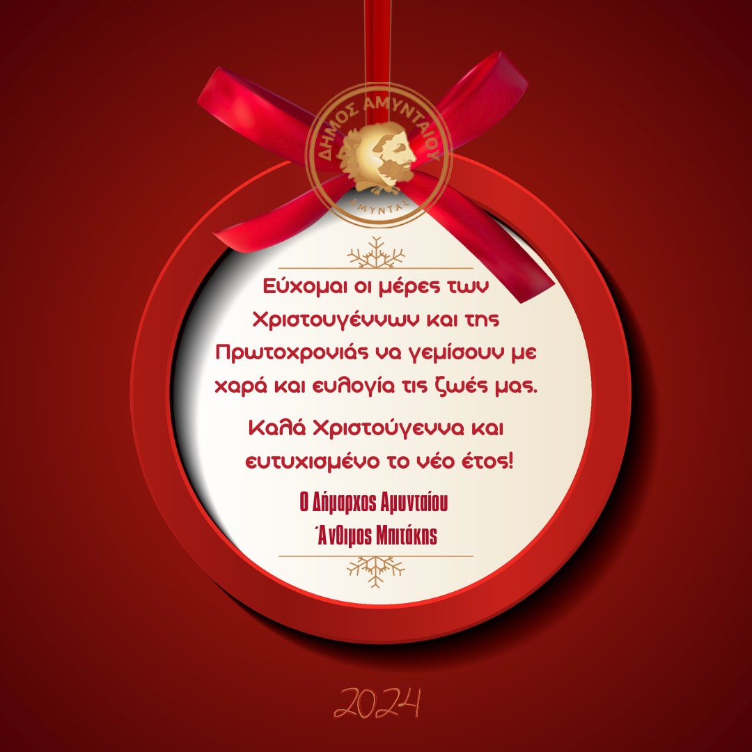 «Με τη φωτεινή λάμψη των Χριστουγέννων να αγγίζει κάθε σπίτι και τη μαγεία της Πρωτοχρονιάς να πλημμυρίζει τις καρδιές μας, σας στέλνω τις θερμότερες ευχές μου.