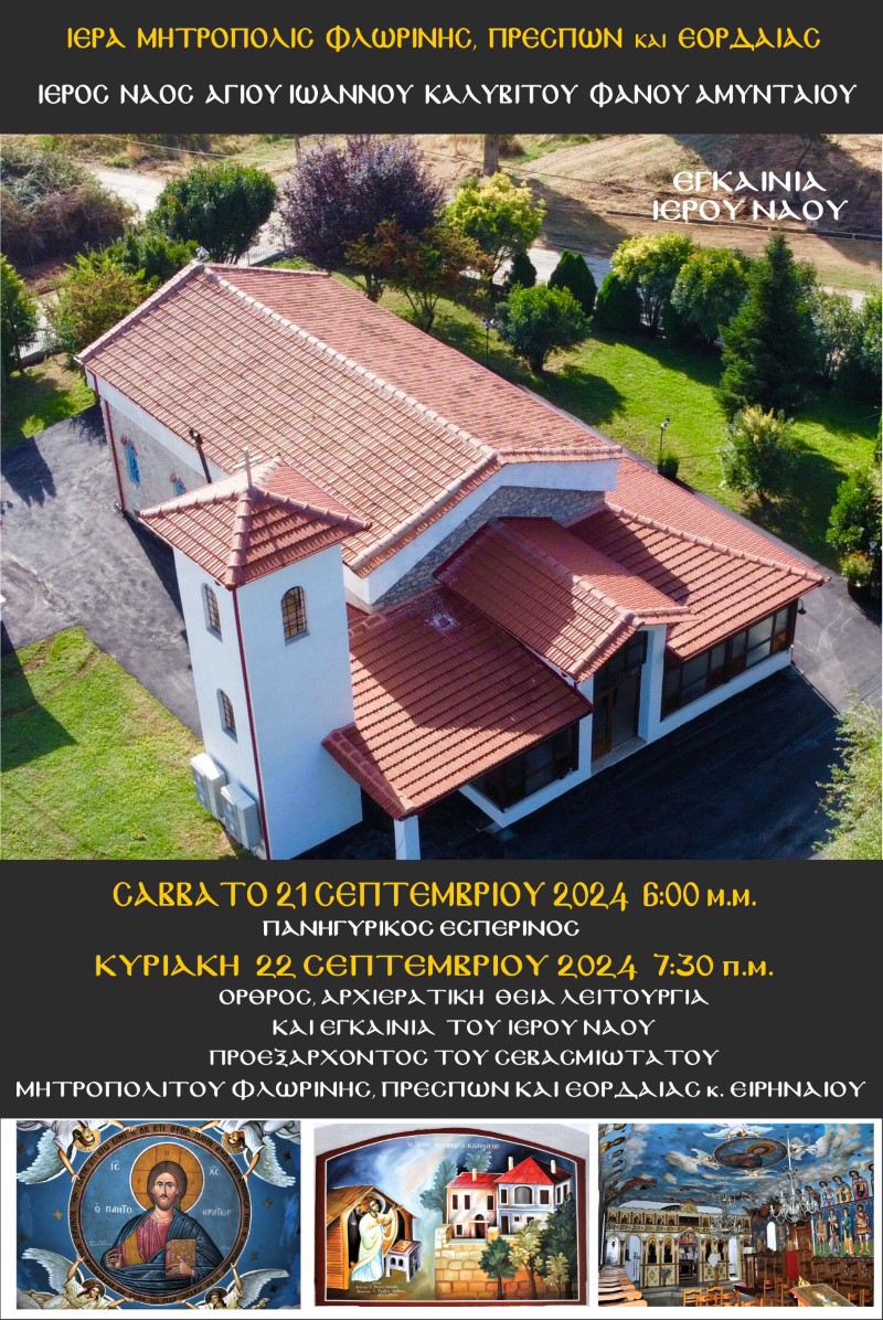 Εγκαίνια Ιερού Ναού Αγίου Ιωάννου Καλυβίτου Φανού Αμυνταίου της Ιεράς Μητροπόλεως Φλωρίνης, Πρεσπών και Εορδαίας