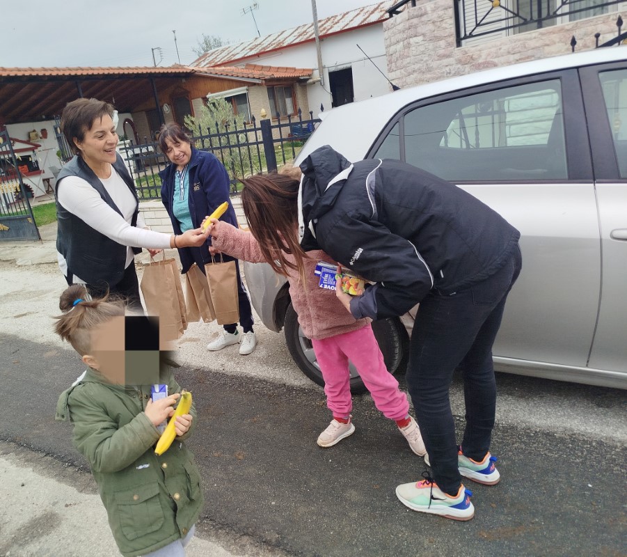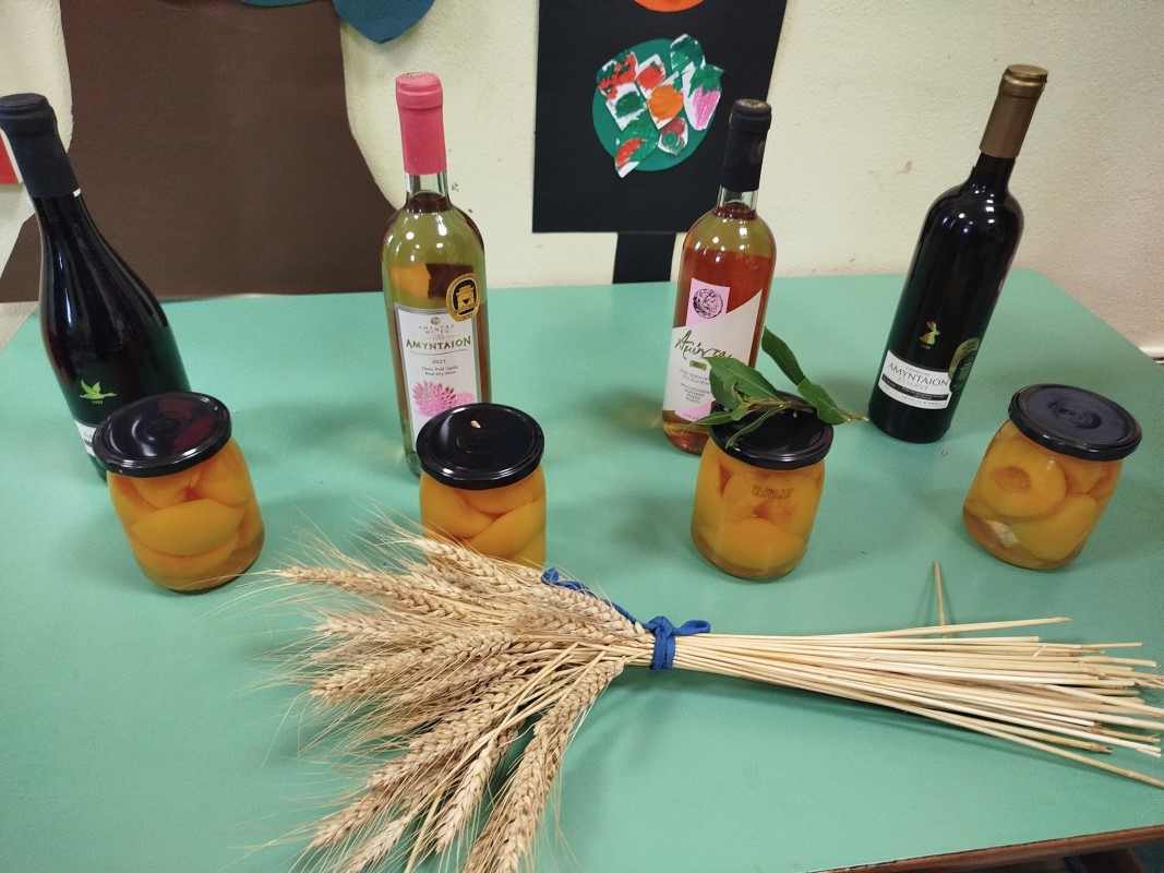 Τέλος, η κα Κρητικού κέρασε τα παιδάκια μας μπανάνες και χυμούς και σε όλους τους εκπαιδευτικούς μας χάρισε από ένα μπουκάλι κρασί και μια σπιτική κομπόστα
