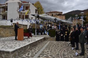 Ο Πρόεδρος του παραρτήματος Λάρισας, Σμηναγός ε.α., Βασίλειος Παπαδόπουλος, στην ομιλία του αναφέρθηκε στα γεγονότα της 30ης Οκτωβρίου 1940, ενώ χαιρετισμό απηύθυνε ο Πρόεδρος της Ένωσης των Αθηνών, Αντιπτέραρχος ε.α., Κωνσταντίνος Τζαβέλλας.