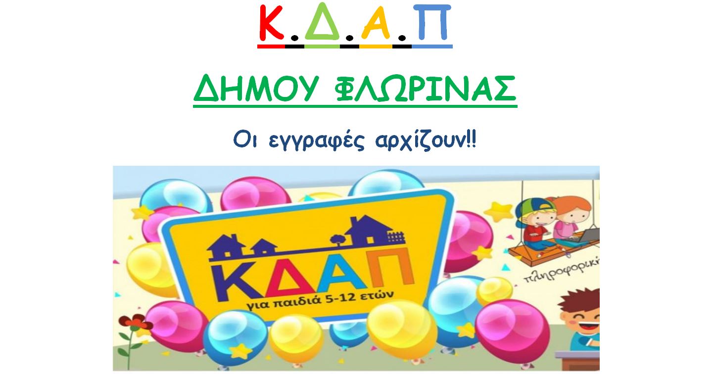 Εγγραφές παιδιών στα Κέντρα Δημιουργικής Απασχόλησης Παιδιών (ΚΔΑΠ) του Δήμου Φλώρινας