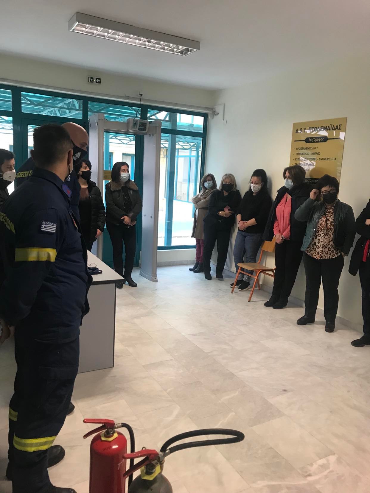 Η Π.Υ Πτολεμαίδας σήμερα 15-11-2021 ημέρα Δευτέρα πραγματοποίησε ενημέρωση για θέματα πυρασφάλειας στο σύνολο των υπαλλήλων και στην συνέχεια πραγματοποιήθηκε εκκένωση κτιρίου στα πλαίσια της ετοιμότητας στο κτίριο που στεγάζεται η ΔΟΥ Πτολεμαίδας.
