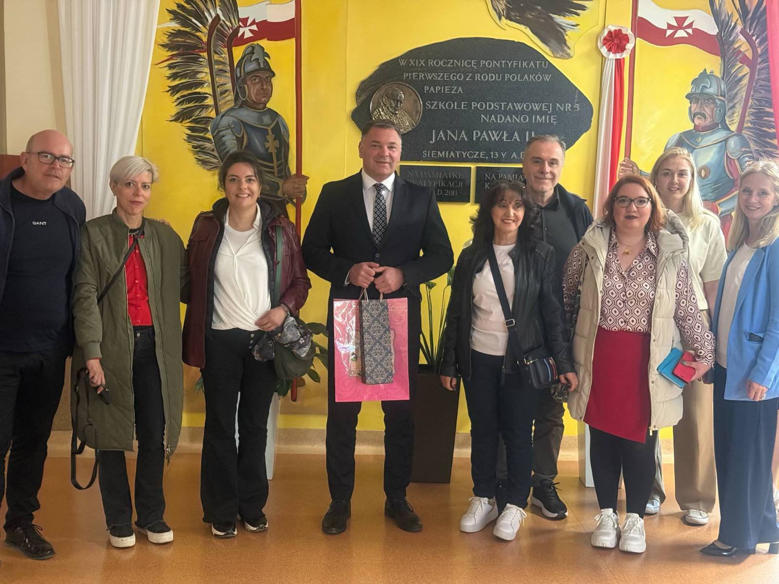 Την τρίτη ημέρα πραγματοποιήσαμε επίσκεψη στο Δημοτικό σχολείο Szkola Podstawowa nr3 στο Siemiatycze, όπου η Διευθύντρια κυρία Barbary Kłopotowskiej μας υποδέχθηκε και ακολούθησε ανταλλαγή απόψεων και σύγκριση ανάμεσα στα εκπαιδευτικά συστήματα των δύο χωρών. Η Πρωτοβάθμια εκπαίδευση στην Πολωνία διαρθρώνεται γενικότερα σε δύο τομείς, στην Προσχολική που καλύπτει ηλικίες 3 έως 7 ετών και στη Δημοτική εκπαίδευση που καλύπτει ηλικίες 7 έως 15 ετών, ενσωματώνοντας ουσιαστικά και το Γυμνάσιο. Το σχολείο είναι δυναμικότητας 600 παιδιών και εκτείνεται σε τεράστιους και πεντακάθαρους χώρους. Υπάρχουν θεματικές τάξεις όπως, Μαθηματικών, Γλώσσας, Μουσικής, Γεωγραφίας, Ιστορίας, Καλλιτεχνικών, Υπολογιστών, Ρομποτικής, Φυσικής στις οποίες οι μαθητές καθημερινά παρακολουθούν τα ανάλογα γνωστικά αντικείμενα. Το ημερήσιο πρόγραμμα διαρκεί από τις 06:30 έως τις 16.30, ανάλογα με τις δραστηριότητες των παιδιών. Στο χώρο της τραπεζαρίας σιτίζονται καθημερινά με 3 γεύματα, το κόστος των οποίων αναλαμβάνουν οι γονείς και οι κηδεμόνες τους. Η συμπερίληψη με εκπαιδευτικούς παράλληλης στήριξης αποτελεί βασικό άξονα, καθώς υπάρχει ειδική αίθουσα με ημίφως για την ηρεμία των παιδιών. Επιπλέον, το σχολείο διαθέτει αίθουσα με αισθητηριακά παιχνίδια για τα παιδιά με ειδικές εκπαιδευτικές ανάγκες και κλειστό γυμναστήριο. Μεγάλη σημασία δίνεται στην προστασία του περιβάλλοντος. Άλλωστε και εδώ ο αύλειος χώρος είναι ένα μεγάλο περιαστικό δάσος, παραχωρημένο από τη Δασική Υπηρεσία όχι μόνο για να γυμνάζονται οι μαθητές αλλά και για να μαθαίνουν για αυτό και να το προστατεύουν. Επίσης, γύρω από το σχολείο με όμορφους μεγάλους κήπους και καλλιέργειες αρωματικών φυτών.