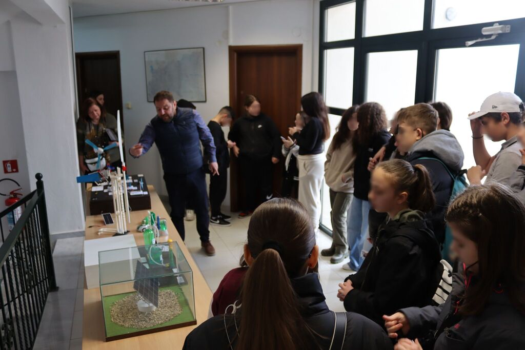 Μετά την παρουσίαση/εισαγωγή, ακολούθησε περιήγηση στον εκθεσιακό χώρο του Κέντρου, όπου οι μαθητές/τριες ανακάλυψαν πρότυπες εφαρμογές των ΑΠΕ, προσομοιώσεις εφαρμογών πράσινου υδρογόνου, ολοκληρωμένα συστήματα φωτοβολταϊκών και ανεμογεννητριών, μπαταριών, εκπαιδευτικά ρομπότ τεχνητής νοημοσύνης, σταθμών φόρτισης και ηλεκτροκίνησης.