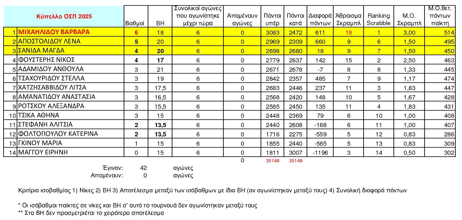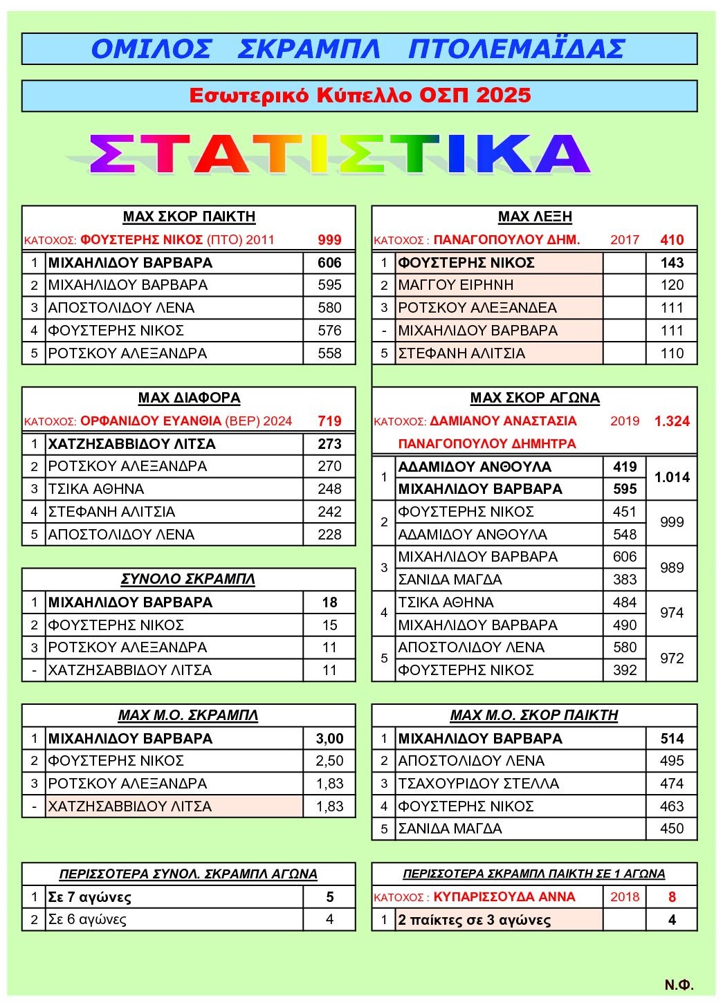 Ο Όμιλος Σκραμπλ Πτολεμαΐδας διοργάνωσε το Κύπελλό του για την αγωνιστική χρονιά 2024 – 2025, τo Σάββατο 31 Μαΐου 2025, στο Καφέ Unique στην Πτολεμαΐδα. Στην διοργάνωση συμμετείχαν αποκλειστικά παίκτες του ομίλου, συγκεκριμένα 14 στον αριθμό που αγωνίστηκαν με σύστημα ελβετικό σε 6 γύρους αγώνων.