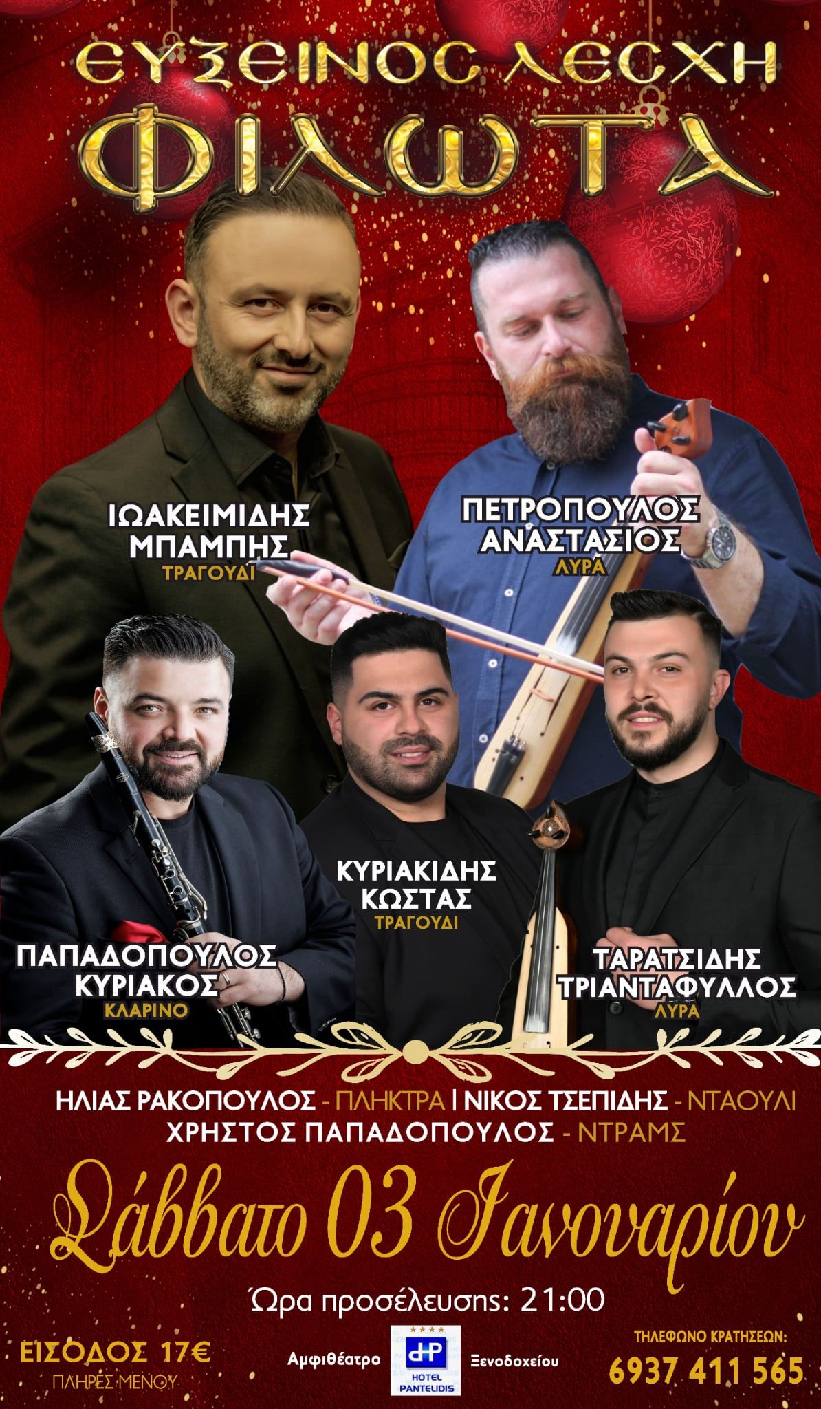 Η Εύξεινος Λέσχη Φιλώτα σας προσκαλεί στον ετήσιο χορό το Σάββατο 3 Ιανουαρίου 2026, σε μια αξέχαστη βραδιά γεμάτη μουσική, χορό και πλούσια δώρα!