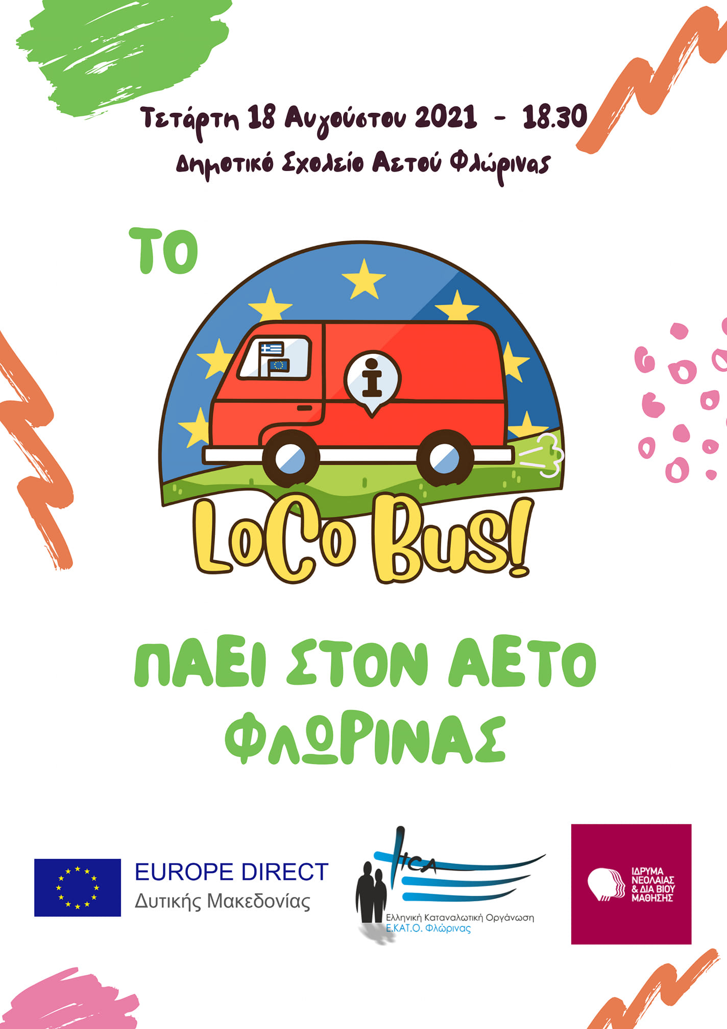 Την Τετάρτη 18 Αυγούστου 2021, στις 18.30 το “LoCo Bus” θα βρίσκεται στον προαύλιο χώρο του Δημοτικού Σχολείου στον Αετό Φλώρινας.
