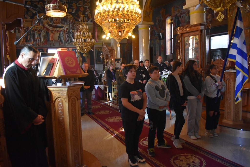 Αρχικά, τελέστηκε Προηγιασμένη Θεία Λειτουργία στον Ιερό Ναό Αγίας Τριάδας και εν συνεχεία επιμνημόσυνη δέηση στο Μνημείο της κεντρικής πλατείας.