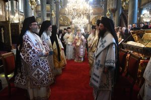 Με ιδιαίτερη λαμπρότητα τελέστηκε το πρωί της Τετάρτης, 11 Ιουλίου, ημέρα κατά την οποία η Ορθόδοξη Εκκλησία τιμά τη μνήμη της Αγίας Ευφημίας, της οποίας το ιερό λείψανο βρίσκεται στον Πατριαρχικό Ναό, η εις Επίσκοπον χειροτονία του εψηφισμένου Μητροπολίτη Νέας Ζηλανδίας Μύρωνα, στο Φανάρι.