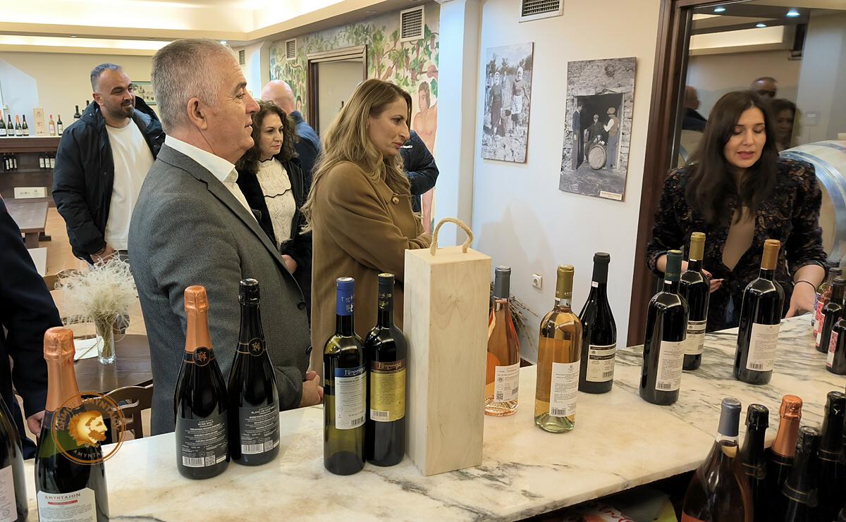 Στη συνέχεια, η κ. Σώκου, συνοδευόμενη από τον Δήμαρχο Αμυνταίου, Αντιδημάρχους και τον Πρόεδρο ΔΗΜ.Τ.Ο. Αμυνταίου της ΝΔ, ξεναγήθηκε στο Οινοποιείο της ΑΣΕΠΑ, όπου ενημερώθηκε για την τοπική οινική παραγωγή και τον στρατηγικό ρόλο του Ξινόμαυρου στην ανάπτυξη της περιοχής. Ακολούθως επισκέφθηκε το εργοστάσιο του Ξινού Νερού, έναν από τους σημαντικότερους αναπτυξιακούς πυλώνες του Δήμου, όπου την υποδέχθηκε ο Πρόεδρος της «Ξινό Νερό Μονομετοχική Α.Ε. ΟΤΑ» Χρήστος Θωμαΐδης. Κατά τη διάρκεια της επίσκεψης η κ. Σώκου ενημερώθηκε για τις δυνατότητες περαιτέρω αξιοποίησης και εξωστρέφειας του μοναδικού αυτού προϊόντος.