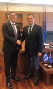 Για τις προοπτικές ανάπτυξης των οικονομικών και εμπορικών σχέσεων Ελλάδας – Αυστραλίας, με επίκεντρο τον αγροτικό τομέα, συζήτησαν κατά τη συνάντηση τους την Τρίτη (3/9/2019) ο Υφυπουργός Αγροτικής Ανάπτυξης και Τροφίμων Κώστας Σκρέκας με τον Επιτετραμμένο της Πρεσβείας της Αυστραλίας στην Αθήνα, Jon Philip.