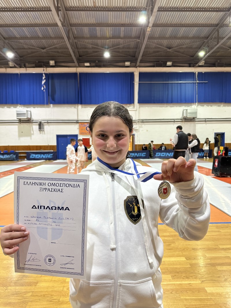 Περήφανους και στην πόλη μας, μας έκαναν οι μικροί μας αθλητές του ξίφους μονομαχίας. Η Ζωή Πολπατζή στην μικρή κατηγορία (U10) κατάφερε να φτάσει στον τελικό, όπου έχασε στον πόντο, κατακτώντας τελικά το ασημένιο μετάλλιο, ενώ στα αγόρια της ίδιας κατηγορίας ο Παναγιώτης Τράικος ανέβηκε στο 3ο σκαλί του βάθρου μετά από εξαιρετική εμφάνιση! Πολύ καλοί και οι υπόλοιποι αθλητές μας: