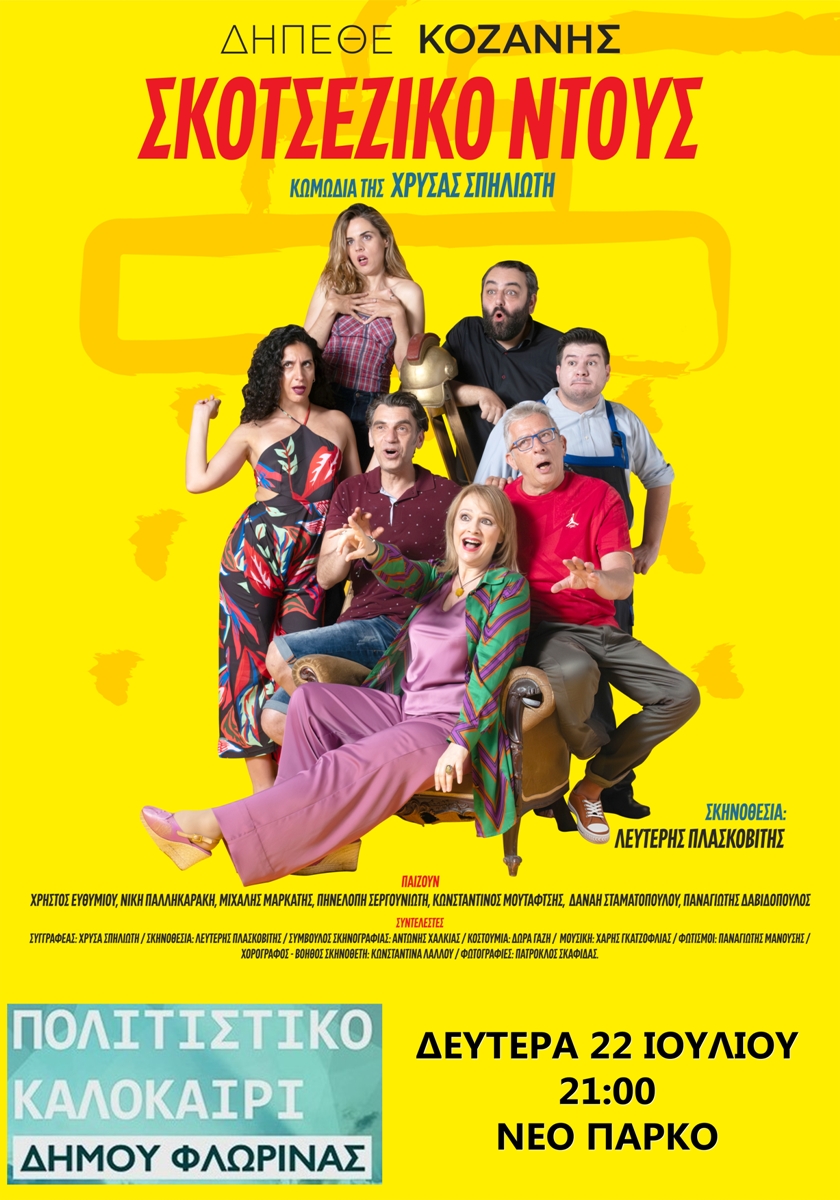 Το “Πολιτιστικό Καλοκαίρι 2024” του Δήμου Φλώρινας συνεχίζεται τη Δευτέρα 22 Ιουλίου, στις 9:00 μ.μ. στο Νέο Πάρκο, με την απολαυστική κωμωδία της Χρύσας Σπηλιώτη “Σκωτσέζικο Ντους” από το ΔΗΠΕΘΕ Κοζάνης.