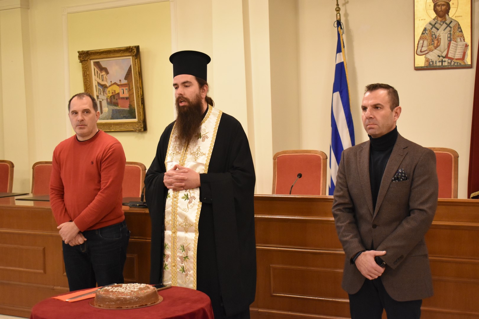 Τη βασιλόπιτα ευλόγησε, εκπροσωπώντας τον Σεβασμιώτατο Μητροπολίτη Καστοριάς κ. Καλλίνικο, ο οποίος συμμετέχει στις συνεδριάσεις της Διαρκούς Ιεράς Συνόδου στην Αθήνα, ο Πανοσιολογιώτατος Αρχιμανδρίτης π. Παύλος Λαζόγκας, απευθύνοντας εγκάρδιες ευχές για μια δημιουργική και ευλογημένη χρονιά.