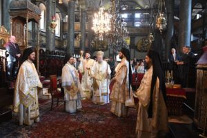 Εκκλησιάστηκαν οι Μητροπολίτες Τρανουπόλεως Γερμανός, Μυριοφύτου και Περιστάσεως Ειρηναίος, Κυδωνιών Αθηναγόρας, ο Επίσκοπος Αλικαρνασσού Αδριανός, ο Πρέσβης της Ελλάδος στην Άγκυρα, Πέτρος Μαυροειδής, ο Πρέσβης της Ελλάδος στο Βιετνάμ Ιωάννης Ραπτάκης, η εορτάζουσα τα ονομαστήριά της Γενική Πρόξενος της Ελλάδος στην Πόλη, Γεωργία Σουλτανοπούλου, Άρχοντες Οφφικιάλιοι, και πλήθος πιστών από την Πόλη και το εξωτερικό.