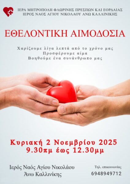 Ιερά Μητρόπολις Φλωρίνης, Πρεσπών & Εορδαίας Εθελοντική Αιμοδοσία