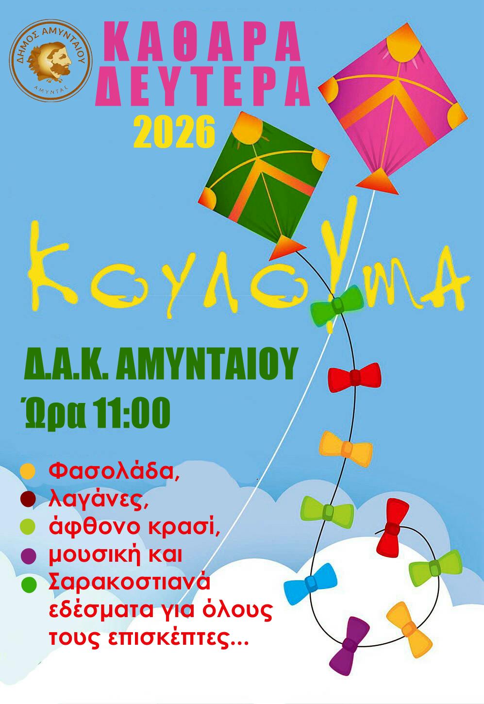 Ο δήμος Αμυνταίου προσκαλεί να γιορτάσετε τα κούλουμα την Καθαρά Δευτέρα στο ΔΑΚ Αμυνταίου