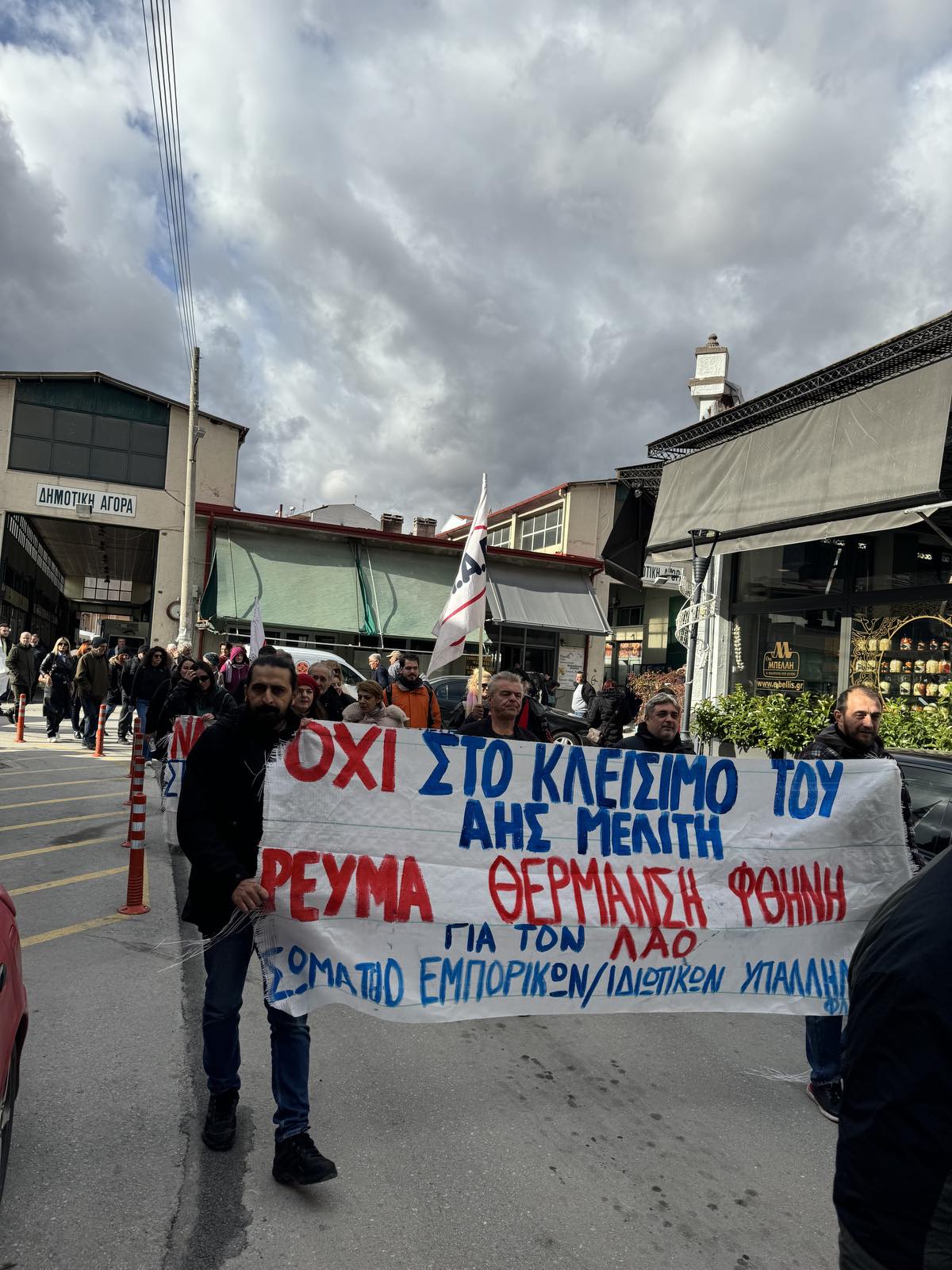 «Από στην συγκέντρωση μας θέλουμε να χαιρετίσουμε τους αγωνιζόμενους εργαζόμενους και κατοίκους της Μελίτης που αγωνίζονται για την ζωή τους. Αγωνίζονται ενάντια στο έγκλημα του κλεισίματος του ΑΗΣ που θα οδηγήσει σε χάσιμο εκατοντάδων θέσεων εργασίας, θα οδηγήσει την Φλώρινα σε ερημοποίηση. Ο αγώνας τους είναι δίκαιος γι’ αυτό τα αιτήματα τους αγκαλιάζουν τον λαό της Φλώρινας για να μην κλείσει ο ΑΗΣ, για φθηνό ρεύμα για όλο το λαό, να διασφαλιστούν όλες οι θέσεις εργασίας.»
