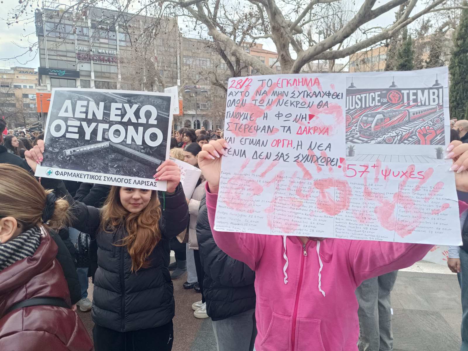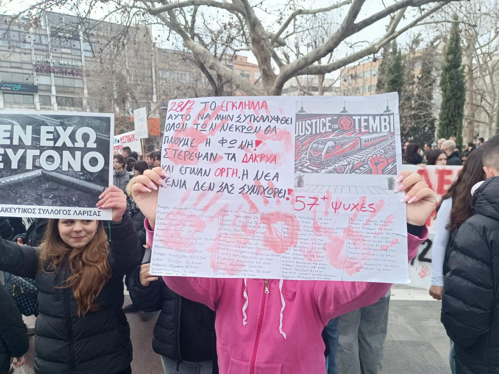 Από το σημερινό (28/02) συλλαλητήριο στη Λάρισα για τα τρία χρόνια από το δυστύχημα των Τεμπών