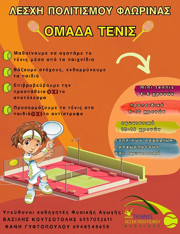 ΝΕΟΣ ΔΙΜΗΝΟΣ ΚΥΚΛΟΣ ΜΑΘΗΜΑΤΩΝ ΤΕΝΙΣ ΓΙΑ ΠΑΙΔΙΑ ΑΠΟ 4 ΧΡΟΝΩΝ ΚΑΙ ΠΑΝΩ .