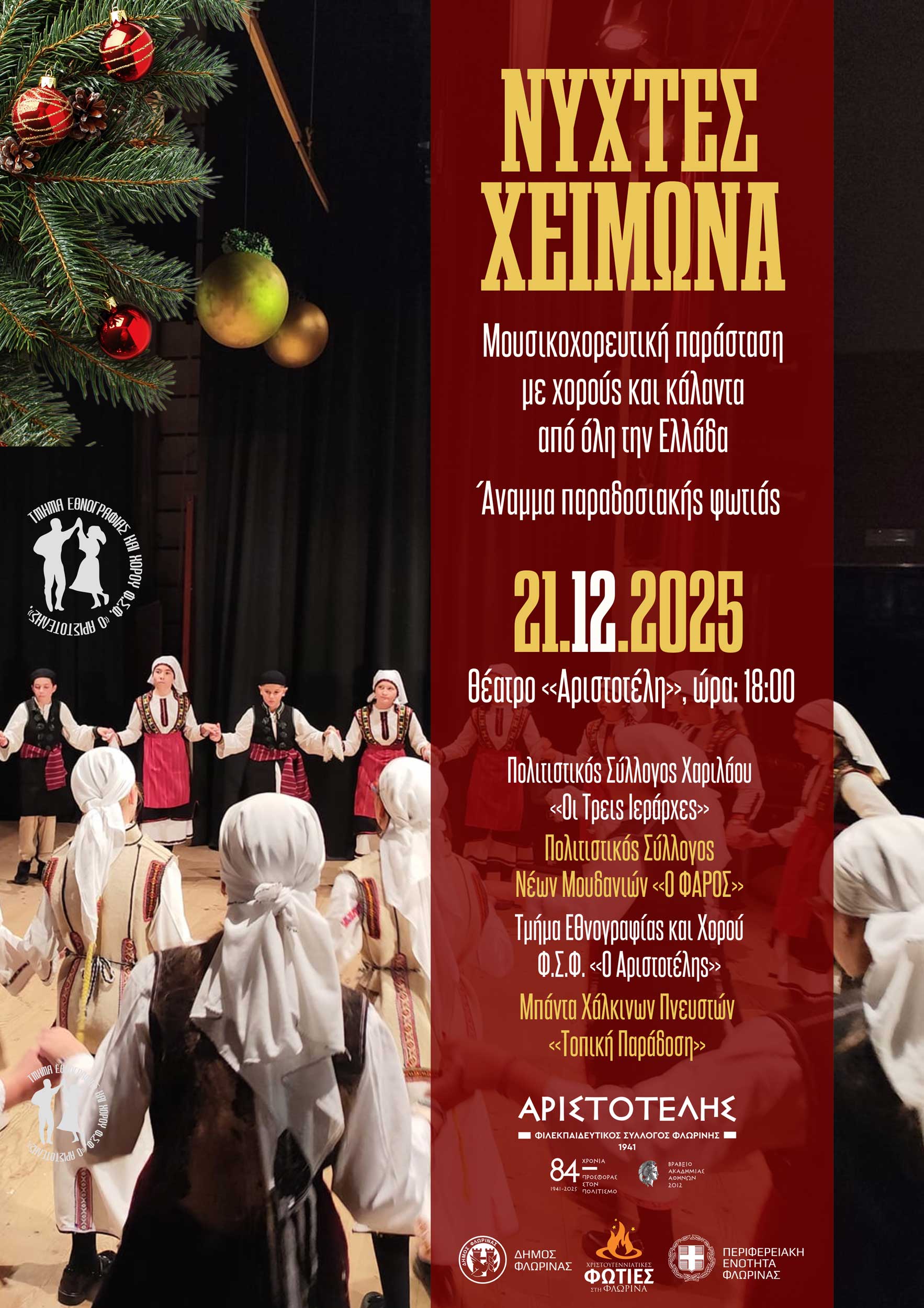 «Νύχτες Χειμώνα» – Χριστουγεννιάτικη μουσικοχορευτική εκδήλωση από το Τμήμα Εθνογραφίας και Χορού του «Αριστοτέλη»