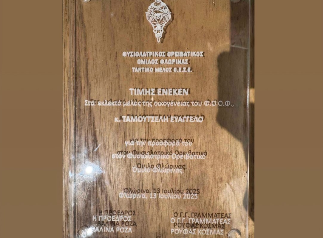 Ο Φυσιολατρικός Ορειβατικός Όμιλος Φλώρινας, την Κυριακή 13 Ιουλίου 2025, σε μια σεμνή τελετή, έντονα όμως συγκινησιακά φορτισμένη, τίμησε το μεγάλο Φλωρινιώτη ζωγράφο και επί χρόνια αντιπρόεδρο του Δ.Σ. του Φ.Ο.Ο.Φ.