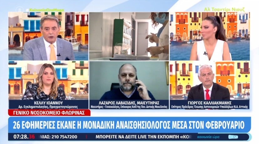 Ο Λάζαρος Λαβασίδης, Μαιευτήρας – Γυναικολόγος, Επίκουρος Καθηγητής στο Πανεπιστήμιο Δυτικής Μακεδονίας και Πολιτευτής ΠΑΣΟΚ Φλώρινας, σε ζωντανή σύνδεση σήμερα Τετάρτη 02.04.2025 στη φιλόξενη εκπομπή «Κοινωνία Ωρα Mega» για τη δραματική υποστελέχωση των κλινικών του Νοσοκομείου Φλώρινας. Η κατάσταση προκαλεί συναισθήματα απογοήτευσης, θυμού και φόβου στους κατοίκους.