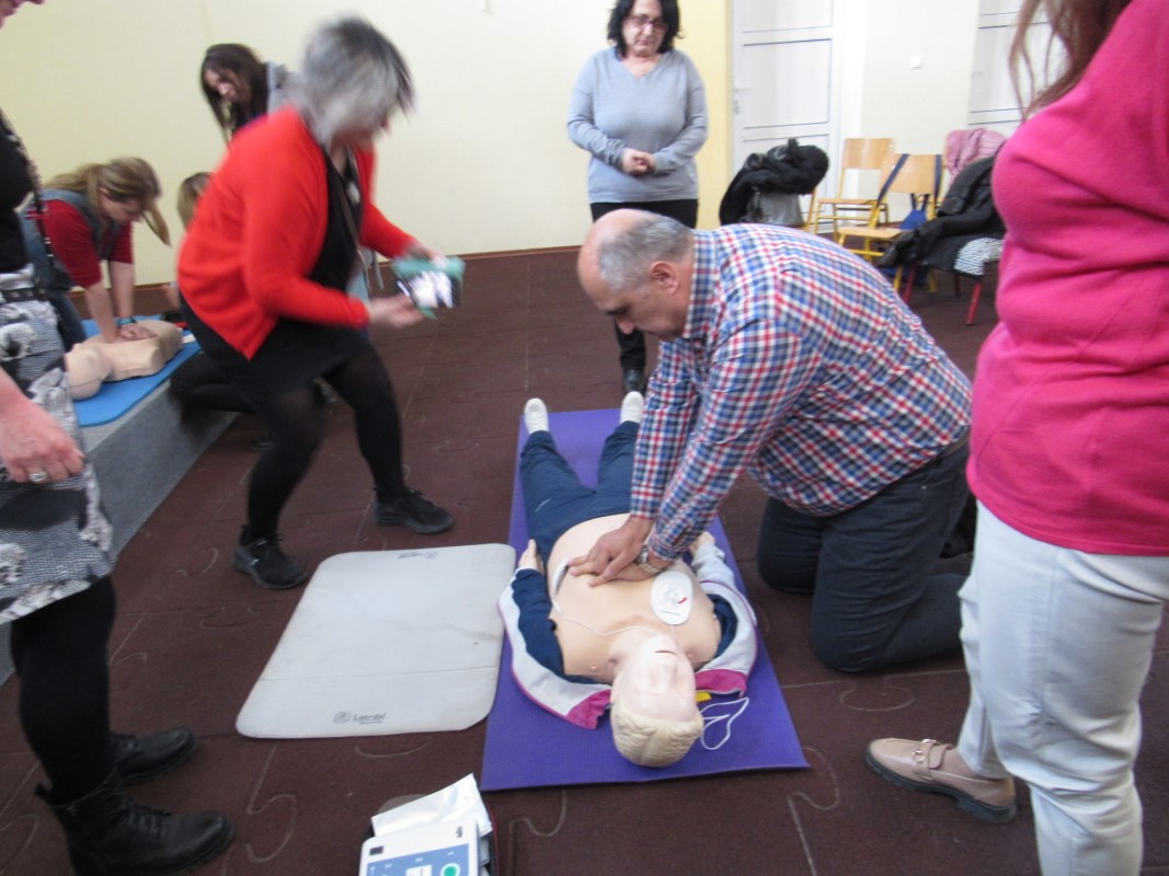 Οι συμμετέχοντες είχαν τη δυνατότητα να ενημερωθούν και εκπαιδευτούν στην παροχή Πρώτων Βοηθειών, στην παροχή Καρδιοαναπνευστικής Αναζωογόνησης-ΚΑΡΠΑ και στη χρήση του