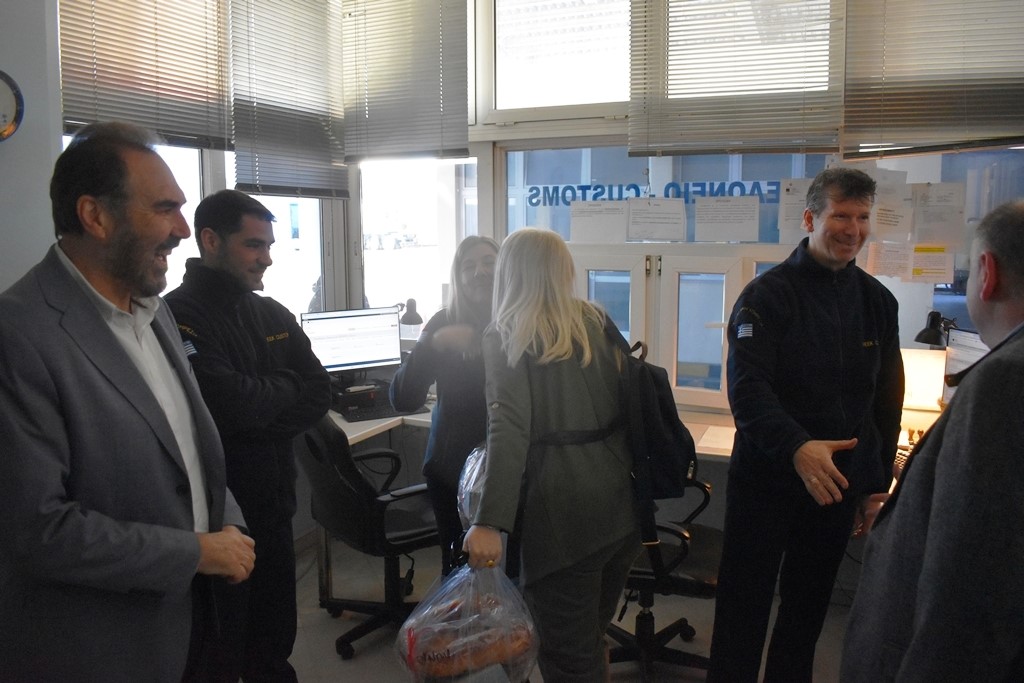 Ακολούθως επισκέφτηκαν το Τελωνείο Νίκης για ανταλλαγή ευχών με τους εργαζόμενους.