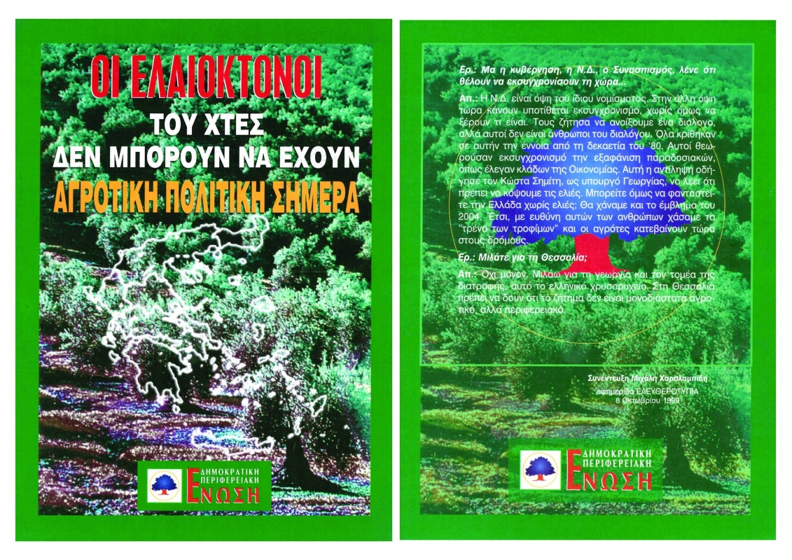 Ένα εξαρτημένο, δορυφορικό, γραφειοκρατικό, παρασιτικό κράτος δεν μπορεί να εκσυγχρονιστεί. Θα συνεχίσει να παράγει υποτέλεια, κρίση, διαφθορά, παρακμή. Είναι επίκαιρη λοιπόν σήμερα η θέση μας όπως εκφράστηκε μέσα από τη διακήρυξη της 13ης Μαρτίου 2000, της Δημοκρατικής Περιφερειακής Ένωσης. Μόνο ένα πολυκεντρικό Κράτος βασισμένο στις δέκα Ιστορικές περιφέρειες, τους 700 Δήμους και τους δύο Μητροπολιτικούς Δήμους (Αθήνα, Θεσσαλονίκη) μπορεί να οδηγήσει στον εκσυγχρονισμό της χώρας, για να αποκτήσει Εθνική Ανεξαρτησία, Κοινωνικό Κράτος, Ανάπτυξη για τους πολίτες και όχι για την ολιγαρχία. Για να μπορούν οι Έλληνες αγρότες να ζουν στον τόπο τους με αξιοπρέπεια και να μην βρίσκονται συνεχώς στους δρόμους, κάθε χρόνο όλο και σε πιο δυσχερή θέση.