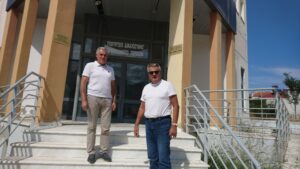Το υπό διαμόρφωση κτίριο επισκέφτηκε ο Αντιπεριφερειάρχης Κοζάνης Γρηγόρης Τσιούμαρης με τον συνάδελφό του εκ Σερβίων Μενέλαο Μακρυγιάννη το οποίο βρίσκεται σε πλεονεκτική και δεσπόζουσα θέση της πόλης των Σερβίων και αποτελεί ακόμη μια εντυπωσιακή μελέτη της εποχής όπου η τεχνική εταιρία μελετών «ΘΕΜΙΣ» του Υπουργείου Δικαιοσύνης έδωσε μια νέα πρόταση αισθητικής και λειτουργικότητας στους χώρους των κτιρίων του.