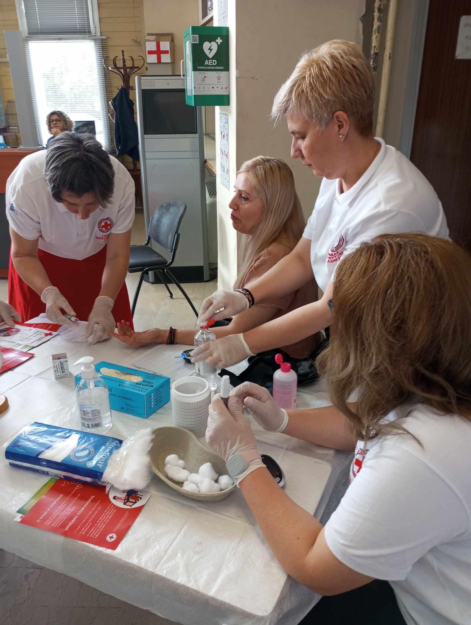 Το Περιφερειακό Τμήμα Φλώρινας του Ελληνικού Ερυθρού Σταυρού τιμώντας την Παγκόσμια Ημέρα Ερυθρού Σταυρού και Ερυθράς Ημισελήνου καθώς και τη Διεθνή Ημέρα Νοσηλευτικής που ανήκουν στο μήνα Μάιο, διεξήγαγε στις 22/5/24 ανοιχτή Προληπτική Υγειονομική Δράση στο ισόγειο του Διοικητηρίου Φλώρινας (μπροστά από το ΚΕΠ), διενεργώντας δωρεάν μετρήσεις Αρτηριακής Πίεσης και κορεσμού Οξυγόνου αίματος, όπως και τεστ ταχείας ανίχνευσης Γλυκόζης αίματος. Πλήθος συμπολιτών μας (187 άνδρες και γυναίκες) αξιοποίησαν την ευκαιρία, λαμβάνοντας από τους Εθελοντές Υγείας και τη Νοσηλεύτρια του Τμήματος σαφή ενημέρωση για τους τρόπους πρόληψης των αναλόγων χρονίων παθήσεων, καθώς και για τις επιπτώσεις της κλιματικής αλλαγής και τα μέτρα προστασίας από τους καύσωνες. Παράλληλα έγινε διανομή φυλλαδίων του εγκεκριμένου από τον Τομέα Υγείας ΕΕΣ υλικού για όλα τα ανωτέρω θέματα.