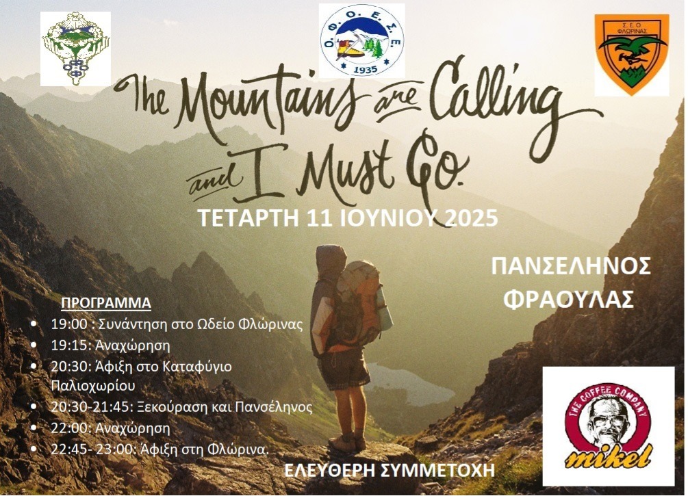 Ο Φυσιολατρικός Ορειβατικός Όμιλος Φλώρινας σε συνεργασία με το Σύλλογο Ελλήνων Ορειβατών Φλώρινας, τον Πεζοπορικό Όμιλο Φοιτητών Φλώρινας και τα Mikel Φλώρινας συνδιοργανώνει νυχτερινή πορεία για την Πανσέληνο του Ιουνίου.
