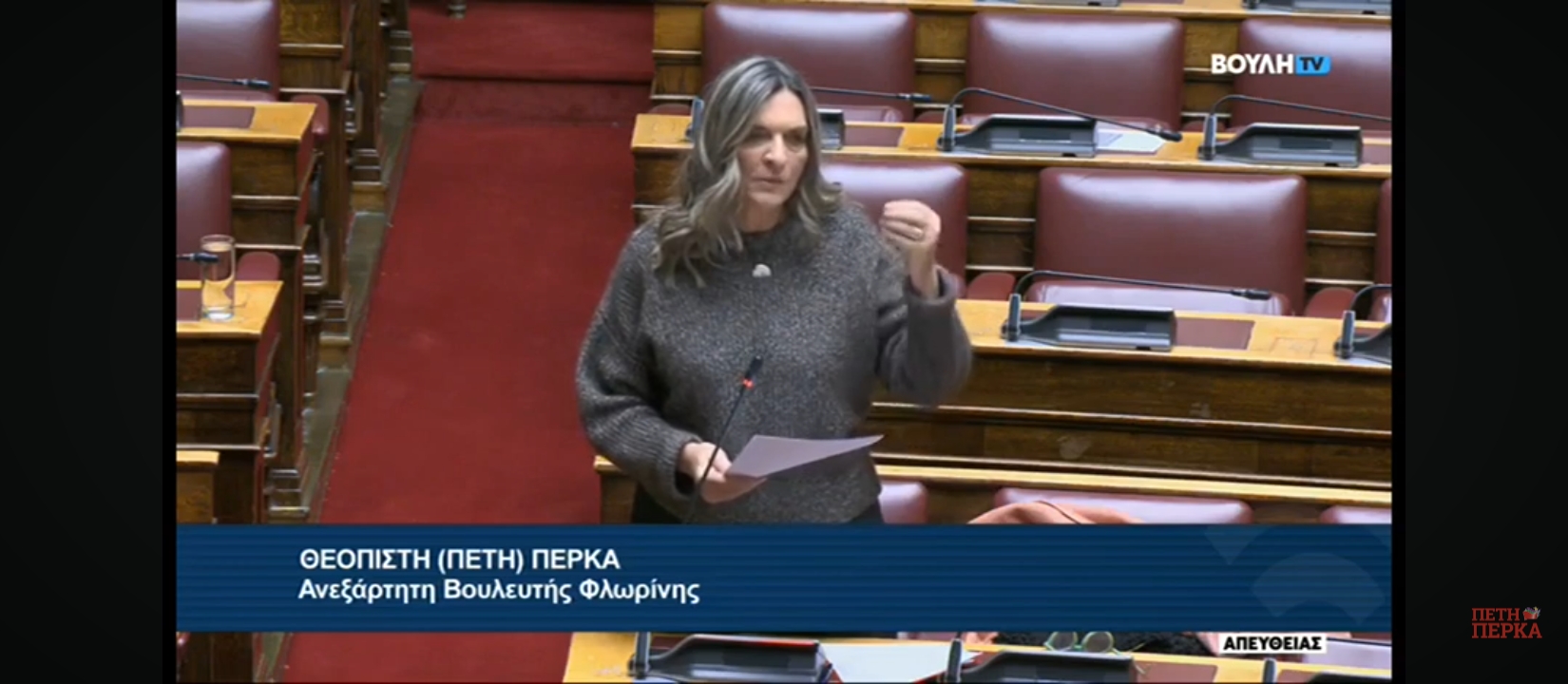 Η κα Πέρκα έκανε ξεχωριστή αναφορά στη Φλώρινα και συγκεκριμένα στο γεγονός ότι από το δυστύχημα των Τεμπών έχει σταματήσει η κυκλοφορία των συρμών στο δίκτυο και η ΤΡΑΙΝΟΣΕ δρομολογεί λεωφορεία. Σημείωσε ότι, με βάση πληροφορίες, εντοπίστηκε πρόβλημα στατικότητας σε γέφυρα στο Ξινό Νερό, χωρίς όμως μέχρι σήμερα να υπάρχει κάποια επίσημη ενημέρωση γι’ αυτό, αλλά ούτε και για το πότε προβλέπεται η επανέναρξη των δρομολογίων. «Πρόκειται για μια γραμμή κρίσιμη για τις καθημερινές μετακινήσεις των κατοίκων της Φλώρινας, πολλοί εκ των οποίων δε διαθέτουν ίδιο μεταφορικό μέσο και χρησιμοποιούν το σιδηρόδρομο για να μετακινηθούν».