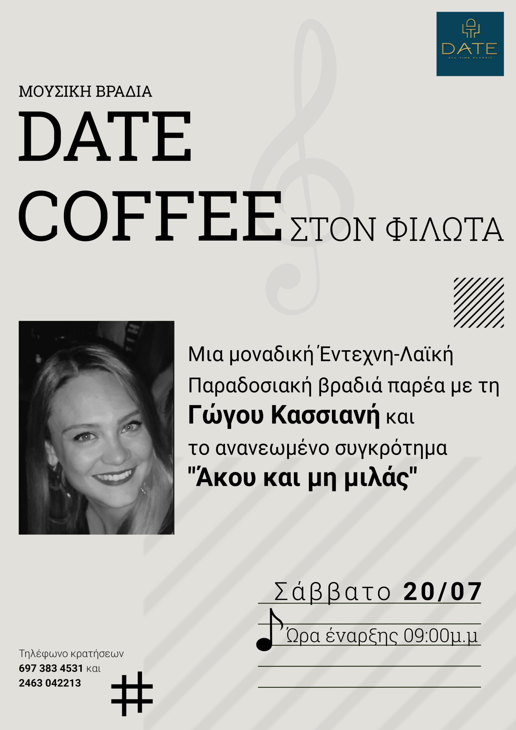Σάββατο 20 Ιουλίου μουσική βραδιά στο date coffee στον Φιλώτα!