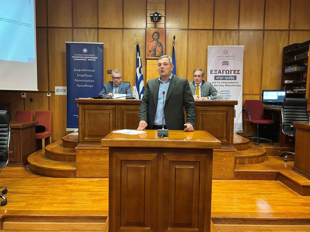 Οδηγός εξωστρέφειας για την ενίσχυση, ανάπτυξη και ανάδειξη του εξαγωγικού προσανατολισμού των επιχειρήσεων της Δυτικής Μακεδονίας αποτέλεσε η εκδήλωση που διοργάνωσε στην Κοζάνη ο Υφυπουργός Εσωτερικών, αρμόδιος για θέματα Μακεδονίας και Θράκης, Στάθης Κωνσταντινίδης, σε συνεργασία με τον Πρόεδρο του Συνδέσμου Εξαγωγέων Σίμο Διαμαντίδη και τα Επιμελητήρια Γρεβενών, Καστοριάς, Κοζάνης και Φλώρινας, με θέμα: «Εξαγωγές στην πράξη για τις επιχειρήσεις της Δυτικής Μακεδονίας».