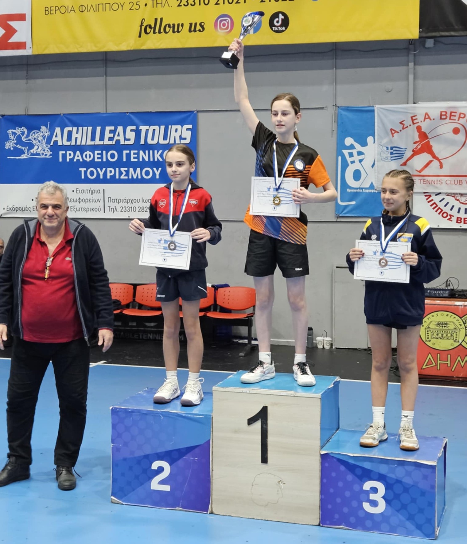 Στο βάθρο των νικητών ανέβηκε η Παναγιώτα Τσέκαρη μετά από μία εξαιρετική εμφάνιση. Αγωνιζόμενη στην κατηγορία των Παγκορασίδων (Κ13) έφτασε μέχρι τον ημιτελικό. Εκεί σταμάτησε γνωρίζοντας την ήττα με 1-3 από αθλήτρια του Θερμαίου Θέρμης. Στον μικρό τελικό επικράτησε δύσκολα αθλήτριας από την ίδια ομάδα της Θεσσαλονίκης με 3-2 και έτσι κατέκτησε το χάλκινο μετάλλιο στην κατηγορία.