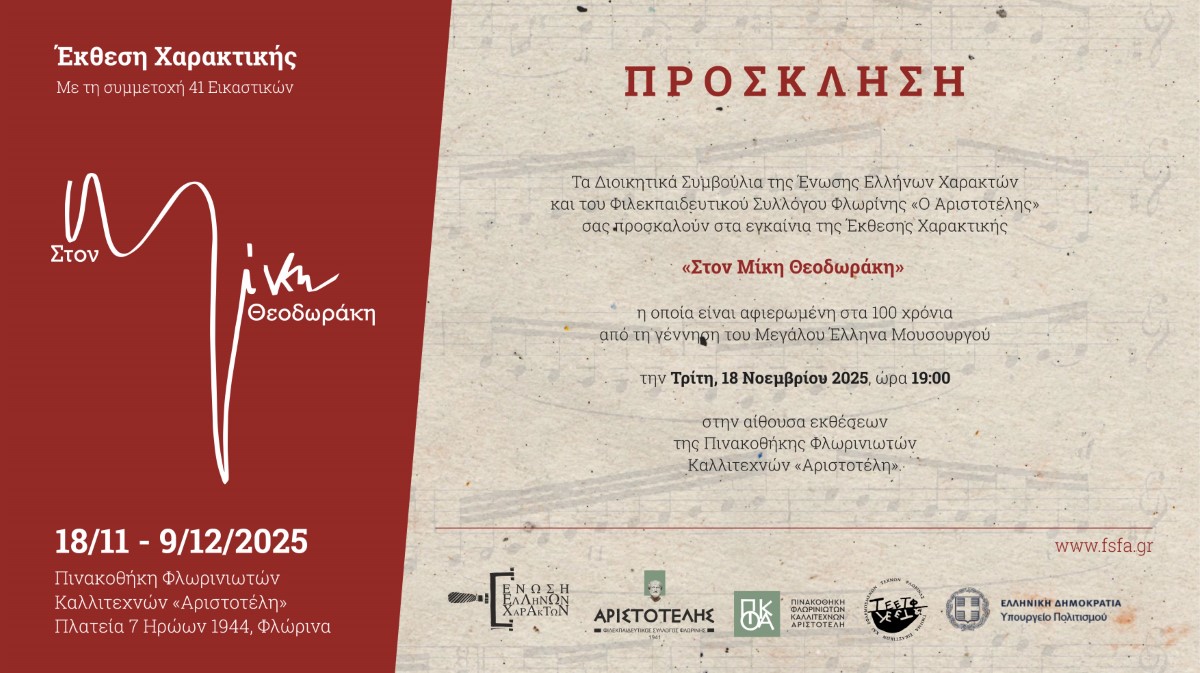 Η Ένωση Ελλήνων Χαρακτών παρουσιάζει στην πόλη της Φλώρινας έκθεση – αφιέρωμα με τίτλο «Στον Μίκη Θεοδωράκη».