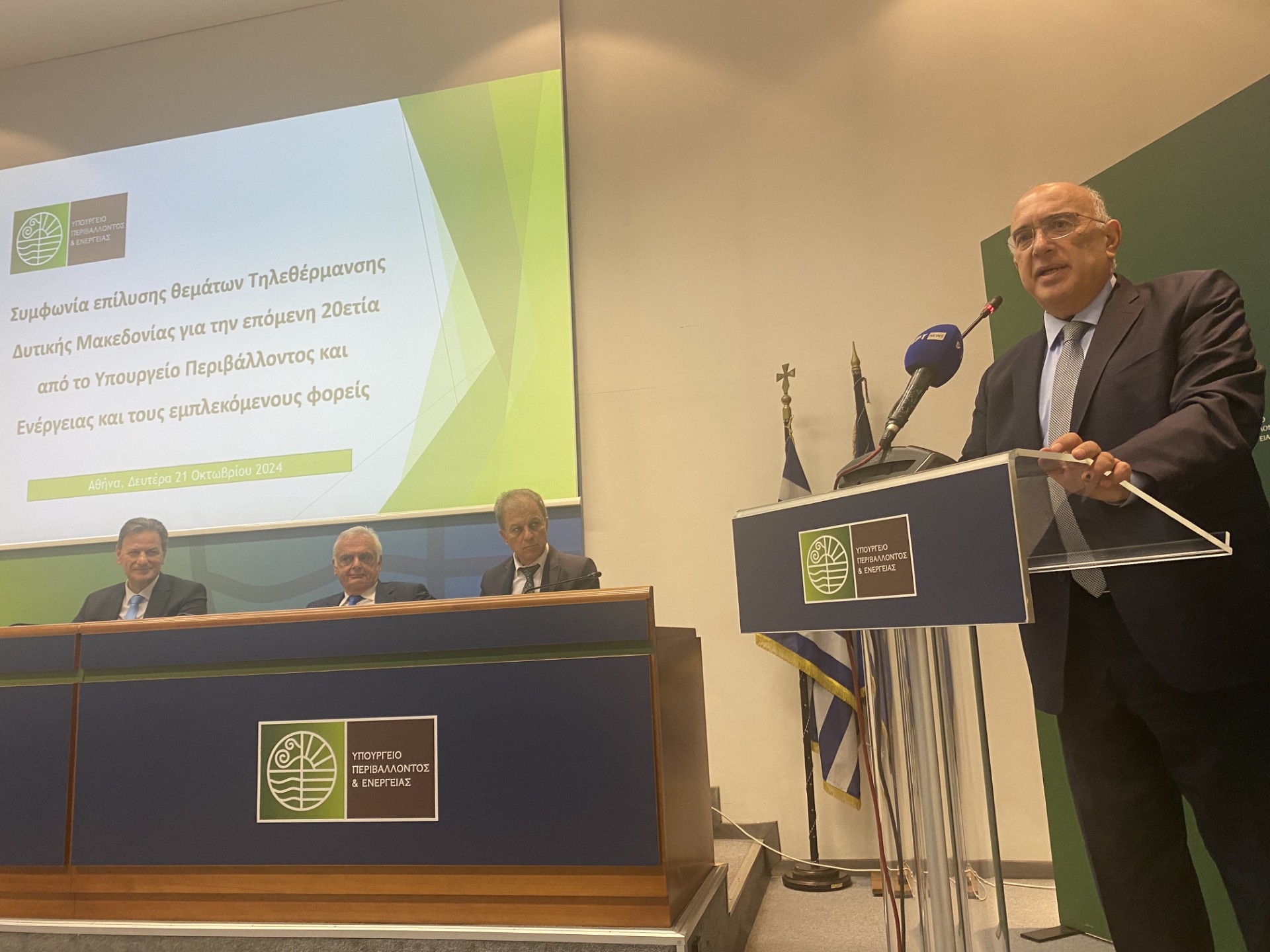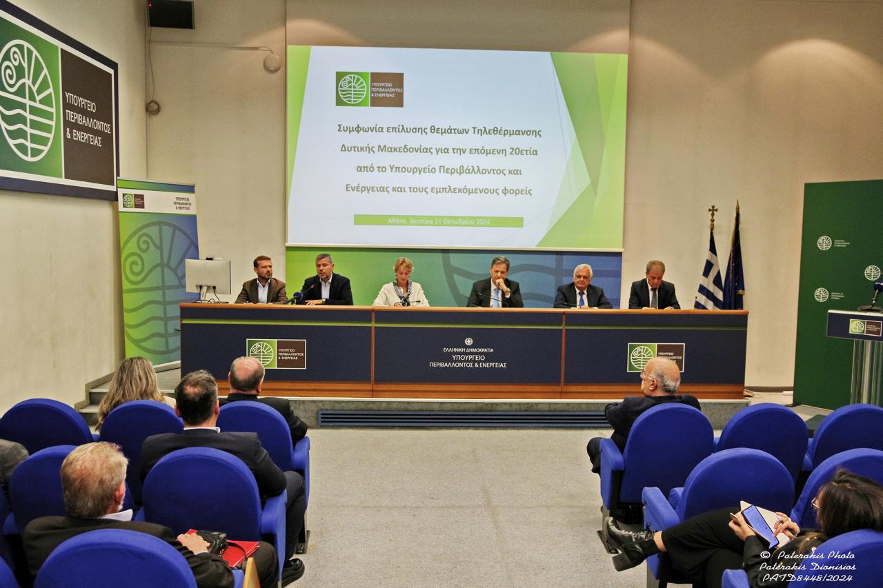 Η συμφωνία διευθέτησης θεμάτων τηλεθέρμανσης Δυτικής Μακεδονίας για την επόμενη 20ετία, από το Υπουργείο Περιβάλλοντος και Ενέργειας και τους εμπλεκόμενους φορείς, παρουσιάστηκε σε ειδική εκδήλωση, που πραγματοποιήθηκε, σήμερα, Δευτέρα, 21 Οκτωβρίου, στο Υπουργείο.