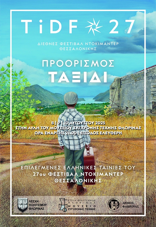 Η Λέσχη Πολιτισμού Φλώρινας, η Στέγη Φιλοτέχνων Φλώρινας και ο Δήμος Φλώρινας σας προσκαλούν στις θερινές περιφερειακές προβολές του 27ου Φεστιβάλ Ντοκιμαντέρ Θεσσαλονίκης, που πραγματοποιούμε στην αυλή του Μουσείου Σύγχρονης Τέχνης Φλώρινας (Μέγαρο Εξάρχου – Τ.Φουλεδάκη 6-8), την Παρασκευή 8, το Σάββατο 9 και την Κυριακή 10 Αυγούστου 2025, στις 9:00μμ.