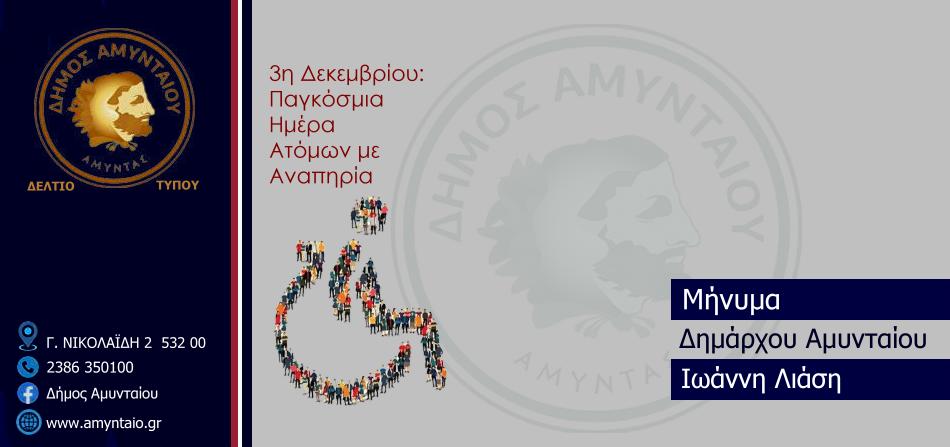 Μήνυμα Δημάρχου Αμυνταίου για την Παγκόσμια Ημέρα Ατόμων με Αναπηρία