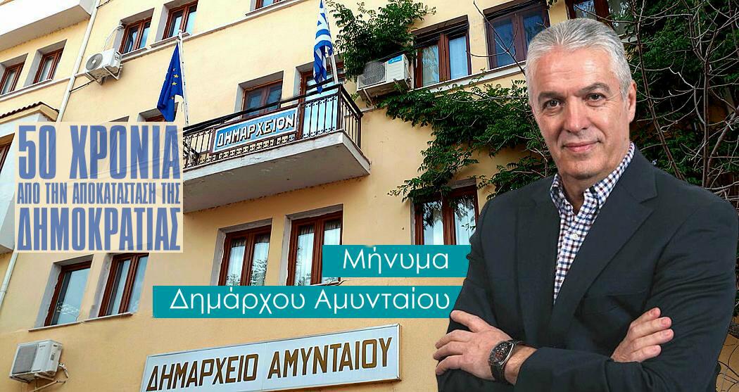 Μήνυμα του Δημάρχου Αμυνταίου, Ιωάννη Λιάση, για την επέτειο 50 ετών από την Αποκατάσταση της Δημοκρατίας